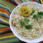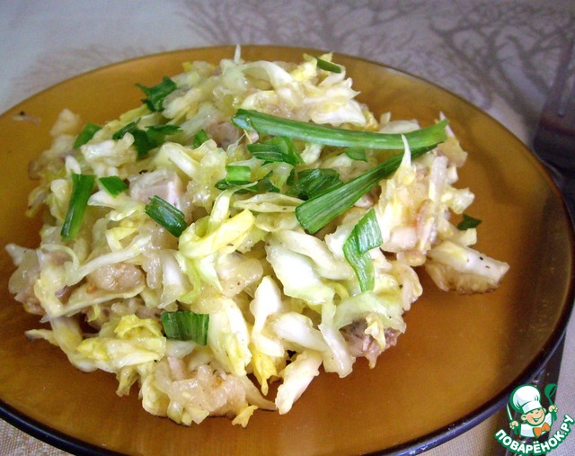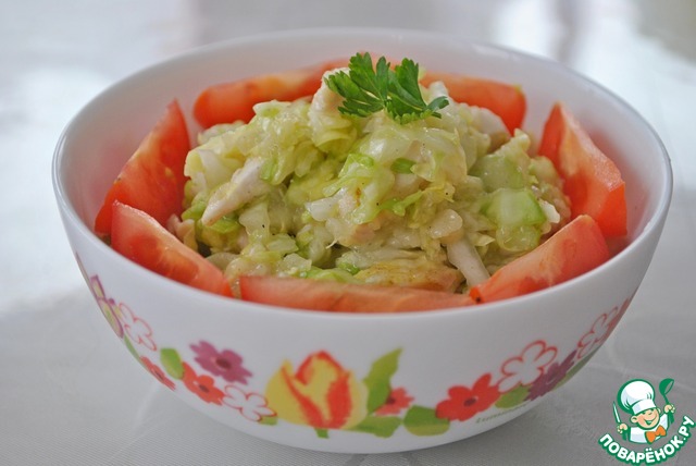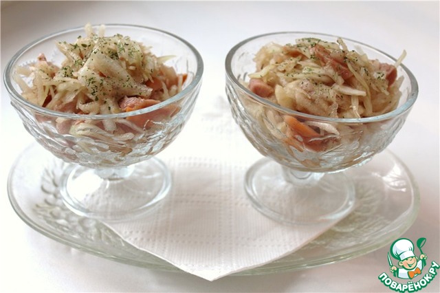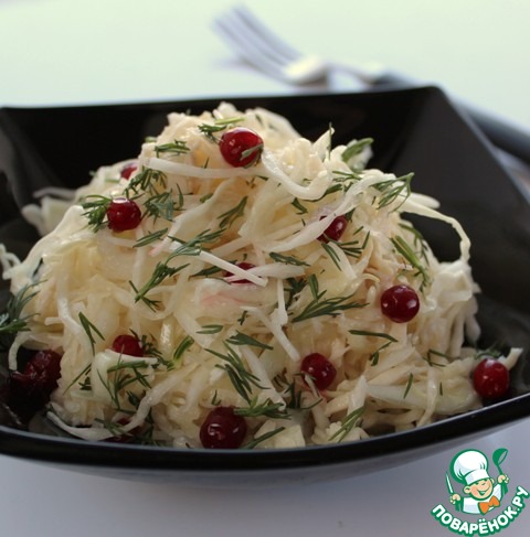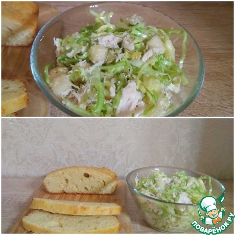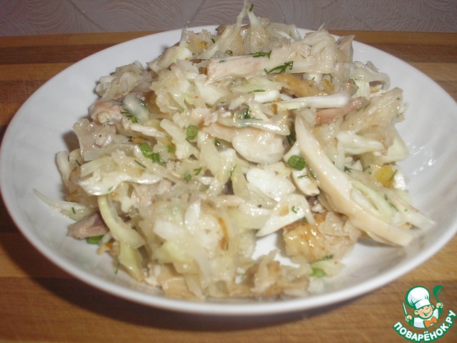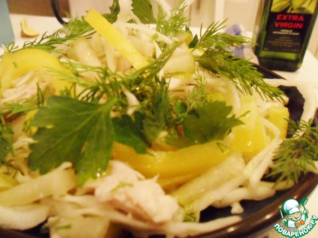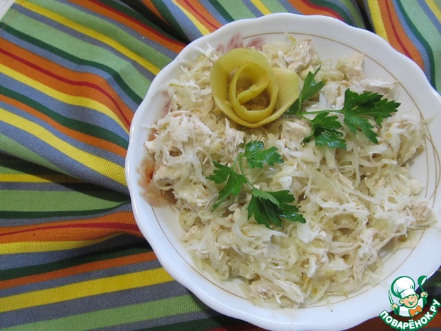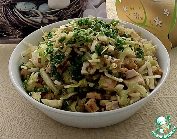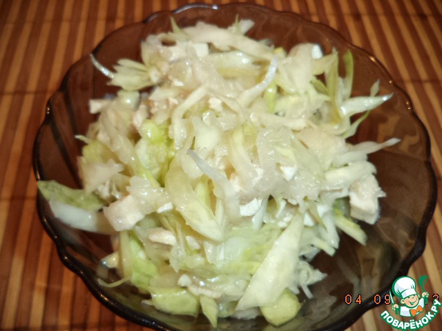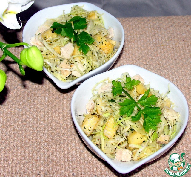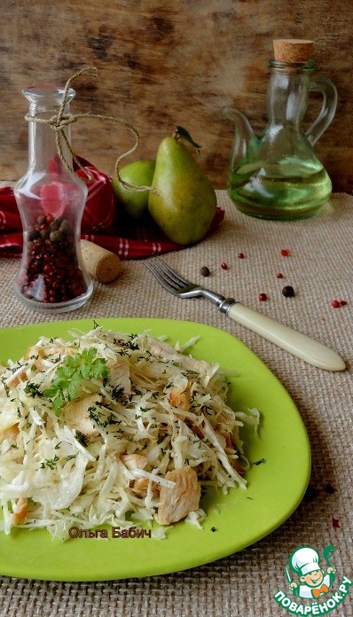 Салат из капусты, курицы и груши