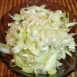 [+5]Капуста у меня была молодая, уксуса у меня не случилось, зато случилась нарезанная кубиками груша Конференция для пирога с грушами, и тертый твердый сыр для сырного кекса. Заправила маслом из виноградной косточки.