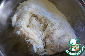 Подготовим тесто. В арабских странах это тесто называется кунафа, в Турции же - кадаиф, по-английски Athens Kataifi Dough – Shredded Filo (Phyllo). Это нитевидное тесто, которое просто невозможно приготовить дома таким, какое оно должно быть.