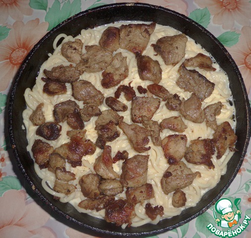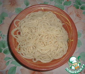 Перемешиваем спагетти с нашим соусом и выкладываем в форму для запекания.