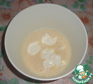 Взбить яйца со сметаной (получаем некий соус для нашей запеканки).