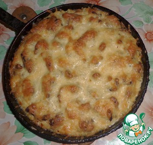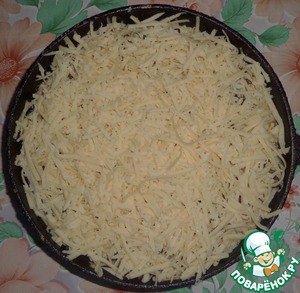 Запеканку сверху покрыть слоем сыра. И поставить в духовку для запекания.