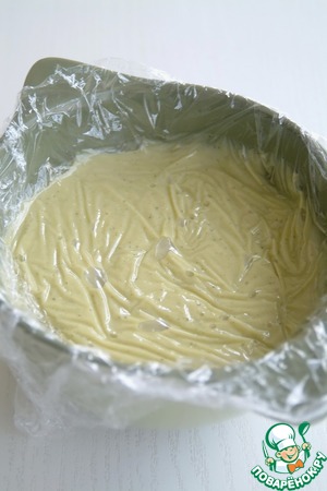 Форму для выпекания (у меня 8х17,5), застелить пекарской бумагой. Вылить тесто.