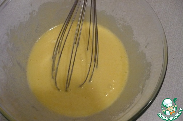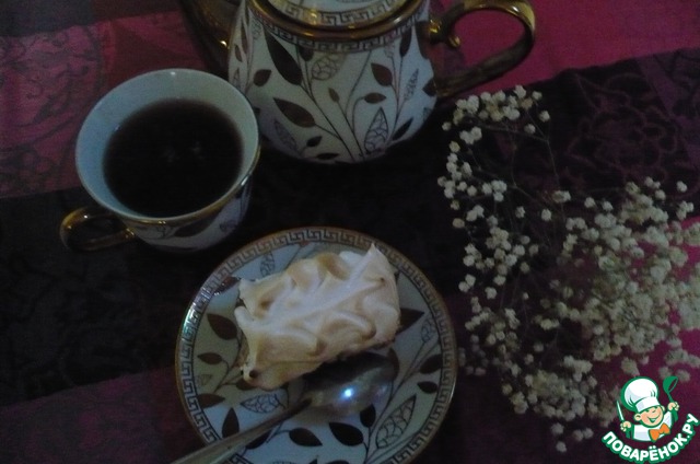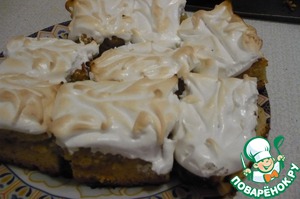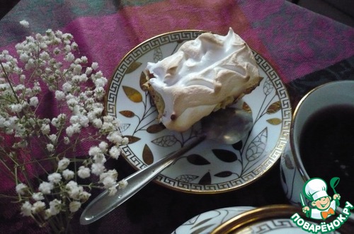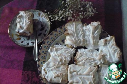 Пока пирог пекся, мы достали белки. Взбили их до твердых пиков, добавляя сахарную пудру.