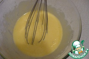 К желткам добавить еще одно яйцо и растереть их с сахаром. -