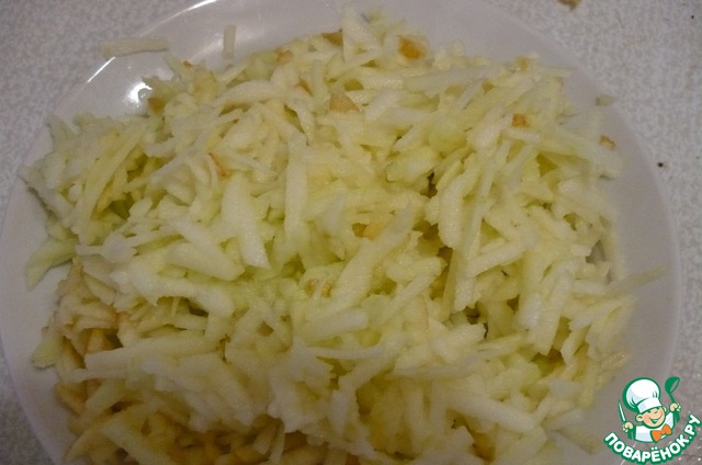 Для этого яблоки очищаем от кожуры, сердцевины и трем на крупной терке. -