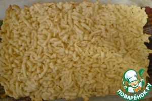 Вынуть из духовки и положить ровным слоем начинку.