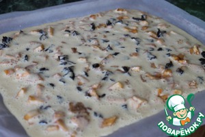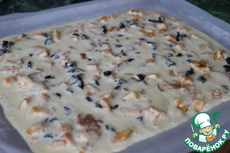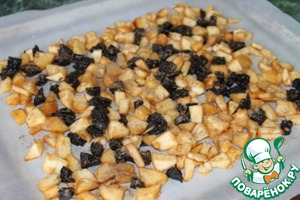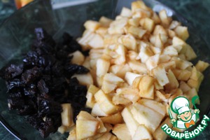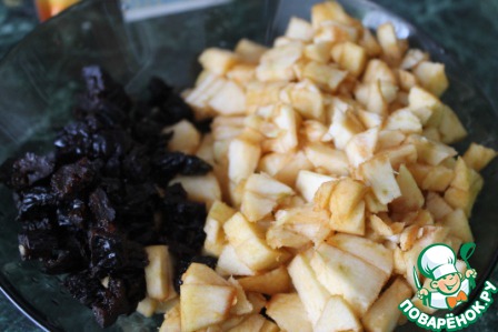 Яблоки очищаем и режем кубиками, чернослив на четыре части.