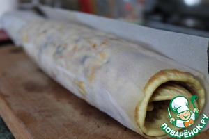 Горячий корж свернуть в рулет и дать полностью остыть.