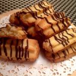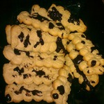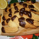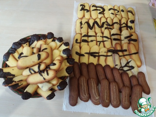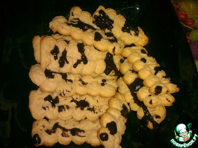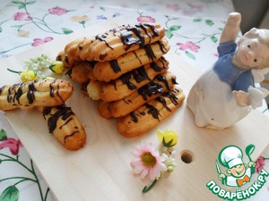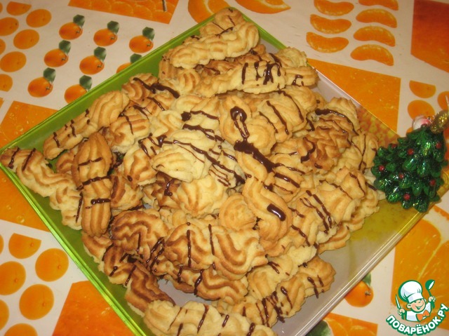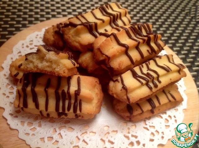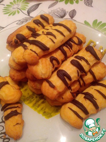 Противень застелить пекарской бумагой и отсадить наше тесто с помощью кондитерского мешка со звездчатой насадкой. Если такого мешка нет, то смочите руки в холодной воде и накатайте колбасок вручную. У меня из всего теста получилось 2 противня печенья. Выпекать 15 минут при 190-200 градусах.