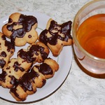 Пока печенья румянятся в духовке, приготовьте шоколадную глазурь. Для этого растопите шоколад на водяной бане и добавьте к нему 2 ст. л. сливочного масла.