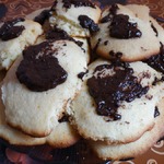 Разбрызгайте глазурь по печенью и дайте ей схватиться. Можно также каждое печенье одним кончиком окунать в глазурь.