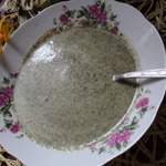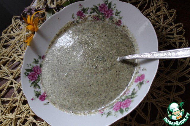 Отваренную зелень поместить в блендер, добавить соль, 30 мл отвара и 30 мл растительного масла. Измельчить.