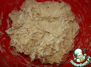 Солод смешиваем с чуть теплой водой (так он равномернее распределится в тесте) и выливаем в муку. Смешиваем все ложкой (руками или в хлебопечке). Просто до однородности. Тесто влажное и липкое, очень ароматное.