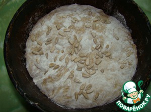 Укладываем в присыпанную мукой форму швом вниз. На этом этапе можно верхушку присыпать семечками. Отправляем на окончательную расстойку в форме на 1 час, накрыв полотенцем или крышкой.