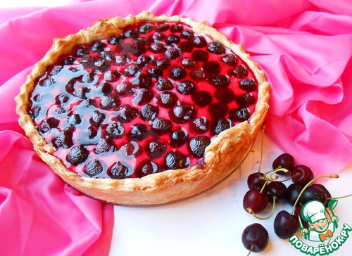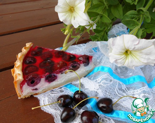 Выложить творог на тесто, сверху – черешню. Выпекать 30 минут при температуре 200С.