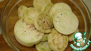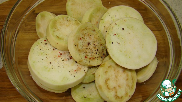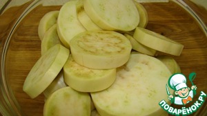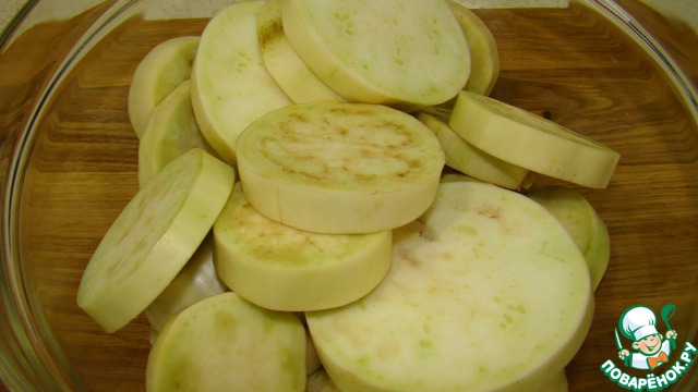 Нарезать баклажаны кружочками толщиной в 1 см.