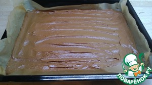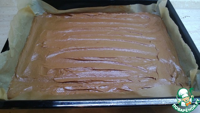 Тесто должно быть густым, но легким. Выкладываем тесто на застеленный пергаментом противень 30*40 СМ. |