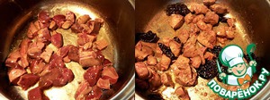 Добавить чернослив, перемешать, накрыть сковороду крышкой и оставить до полной готовности печени. На этом этапе можно посолить. -