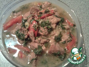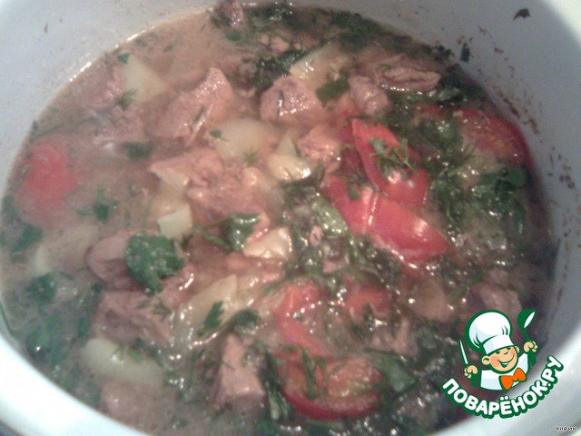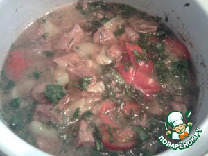 За 2 минуты до окончания приготовления добавить к мясу порубленную зелень