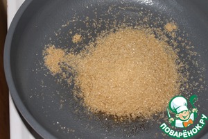 Для соленой карамели нагреваем сахар на сковороде до полного его расстворения.
