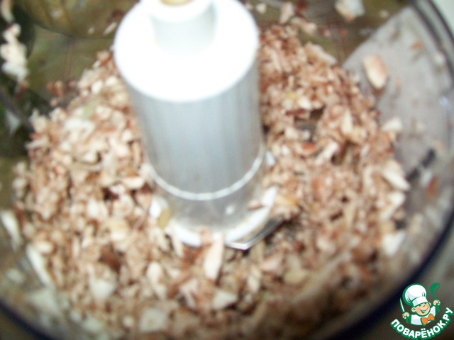 В то время, как жарятся лук и грибы, тру на тёрке сваренные вкрутую яйца (а можно тоже в блендере).