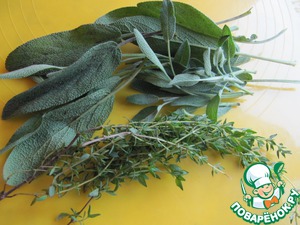 Веточки шалфея и тимьяна вымыть, отобрать молоденькие листики.