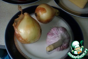 Для соуса мы используем лук, чеснок.