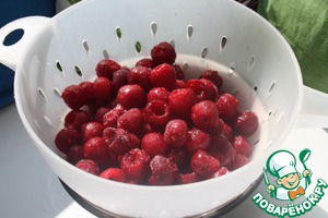 У меня вишня была замороженная, поэтому первым делом я ее откинула на дуршлаг, полностью разморозила и дала стечь соку. -