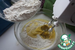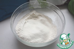 Просеиваем в миску муку с разрыхлителем несколько раз, добавляем ванильный сахар.
