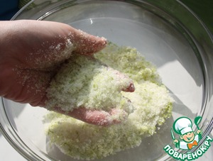 Сахар должен приобрести зеленоватый оттенок. В этот раз лаймы мне попались какие-то дохленькие, потому сахар ну ооочень слабо зеленый ))