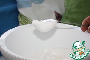 Я, как уже "битый", наученный горьким опытом своих ошибок боец с белками, рассказываю: чтобы взбить белки нужно: а) чтобы посуда была абсолютно сухой, без каких-либо жирных капель или воды; б) белки должны быть начисто (!) отделены от желтков; в) белки предварительно хорошо охладить; г) можно добавить щепотку соли; д) начинать взбивать на небольшой скорости, постепенно увеличивая обороты венчиков. -