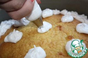 С фантазией у меня туговато, но что получилось - то получилось )) Ставим наш пирог в слабо разогретую духовку (100-120 градусов). Выпекаем, пока безе сверху не подсохнет, 20-40 минут (ориентируйтесь на свою духовку).