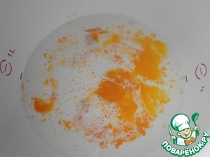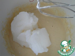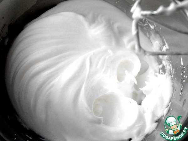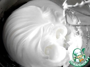 Яйца разделить на желтки и белки. Белки взбить в крепкую пену.
