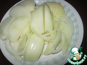 Лук нарезаем полукольцами, чем больше лука - тем сочнее и вкуснее получится навага.