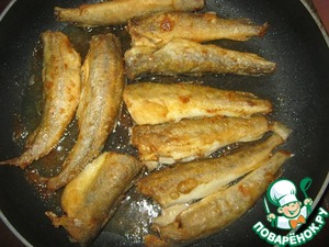 Моем сковороду и готовим вторую часть, таким же способом. Рекомендую рыбу немного остудить и дать ей пропитаться.