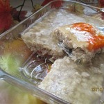Вот в этот раз заливное.. Мясо суховатое куриное, поэтому решила его через мясорубку пропустить и добавила чеснок.