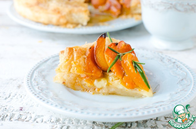 Рецепт «Абрикосовый тарт с сыром бри и розмариновым мёдом»: