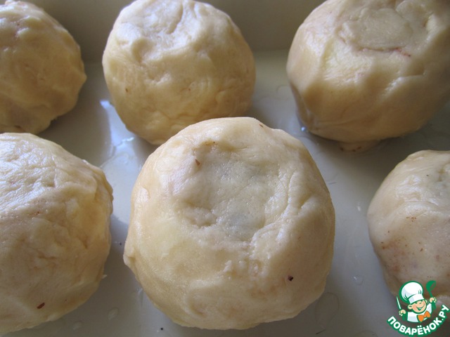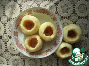 Тесто разделить на кружочки по количеству яблок. Кружочки раскатать так, чтобы один кружочек мог вместить целое яблоко.