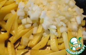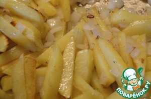 Картофель обжариваем в небольшом количестве растительного масла. Сначала на сильном огне. Не солить! Пока.