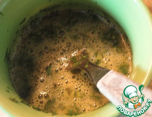 Яйца взбиваем вилкой с добавлением щепотки соли, свежемолотого черного перца и рубленой зелени.