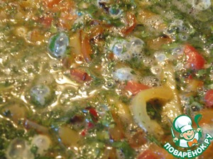 В одном из вариантов этого блюда предлагалось запечь это "счастье" в духовке. Но из других вариантов я поняла, что традиционно блюдо готовится таки на сковороде, что я и сделала.