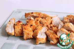 - Филе куриное (варен., жарен. или запеч.) — 250 г