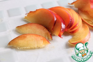 Персик (нектарин) нарезаем тонкими длинными ломтиками.