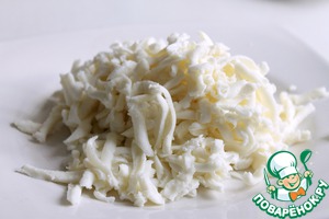 Моцареллу можно натереть на крупной терке либо порезать на тонкие кружочки - как удобнее для Вас.