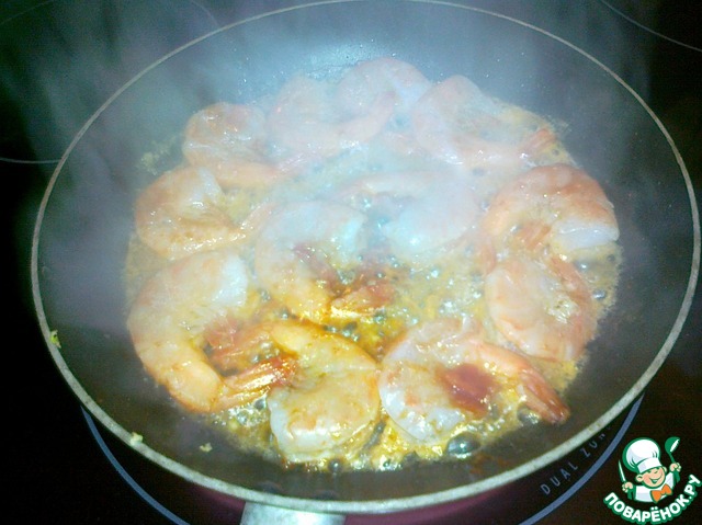 Быстро обжарить креветки по паре минут с обеих сторон.