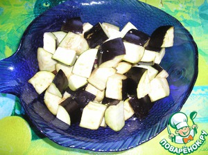 Баклажаны нарезать на кусочки размером не более, чем 2,5 см. Это нужно для того, они чтобы полностью протушились в чаше слоу кукера.