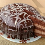 Все это довела до кипения, охладила до комнатной температуры и покрыла торт. -