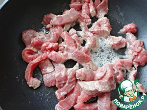 На сковороду налить масло, обжарить на нем мясо минут 5.