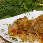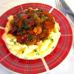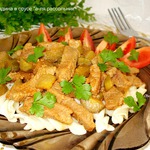 Подаём с картофельным пюре. Так вкуснее всего.. (По крайней мере, у нас так считается)))